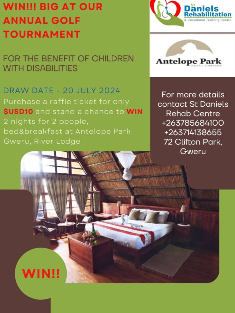 We’re hosting a Golf Tournament and raffle to support children with disabilities and their caregivers. Win a fantastic prize: 2 nights for 2 at Antelope Park River Lodge with Bed & Breakfast! All proceeds will benefit our organization’s efforts to empower children with disabilities and their caregivers. Get your raffle tickets now and join us